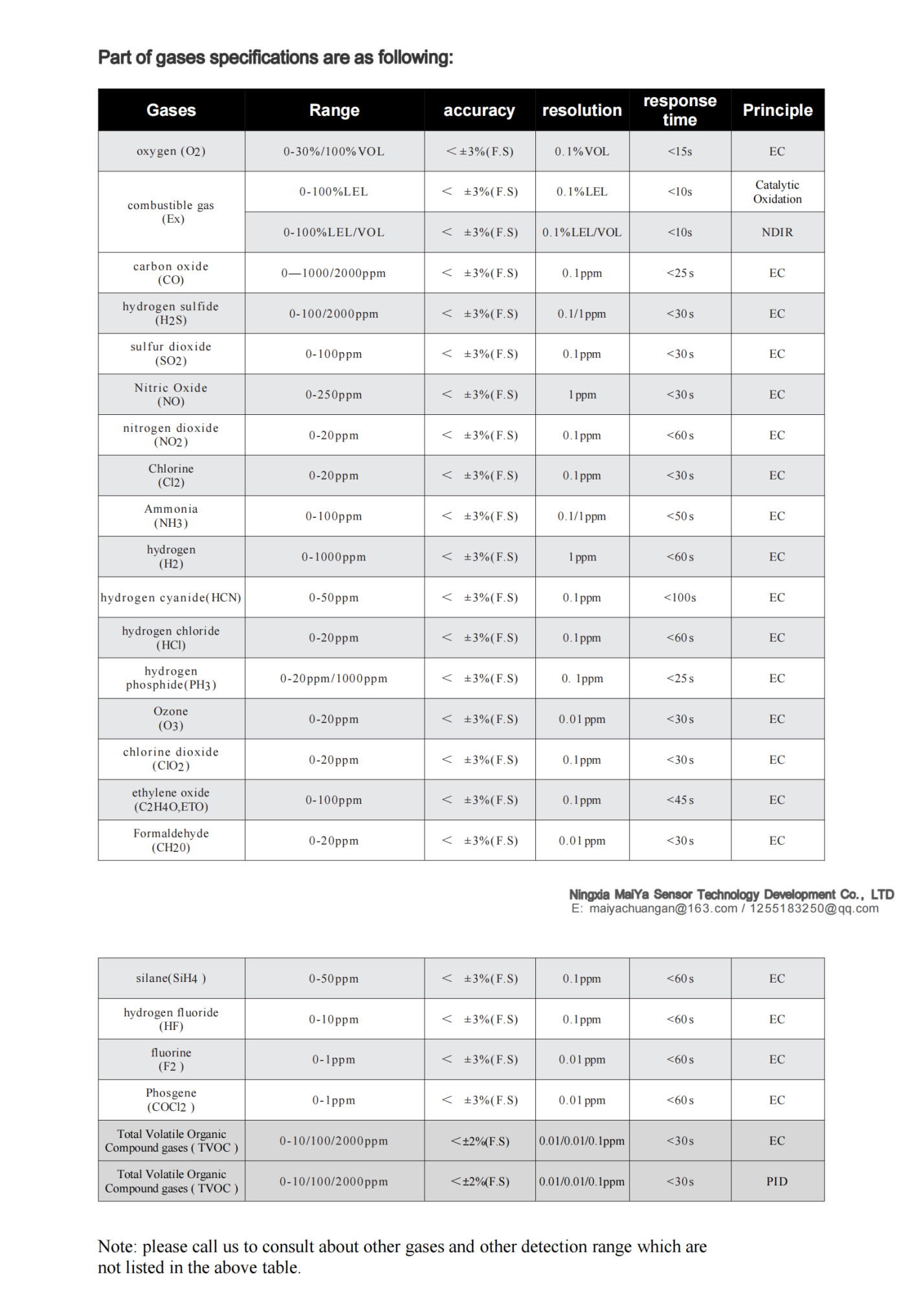 Electrochemical principle:2~3 years;Oxygen gas:2 years or 6 yearscan be selected; infrared principle:5~10years; catalytic combustion:3 years; thermal conductivity:5 years.  |