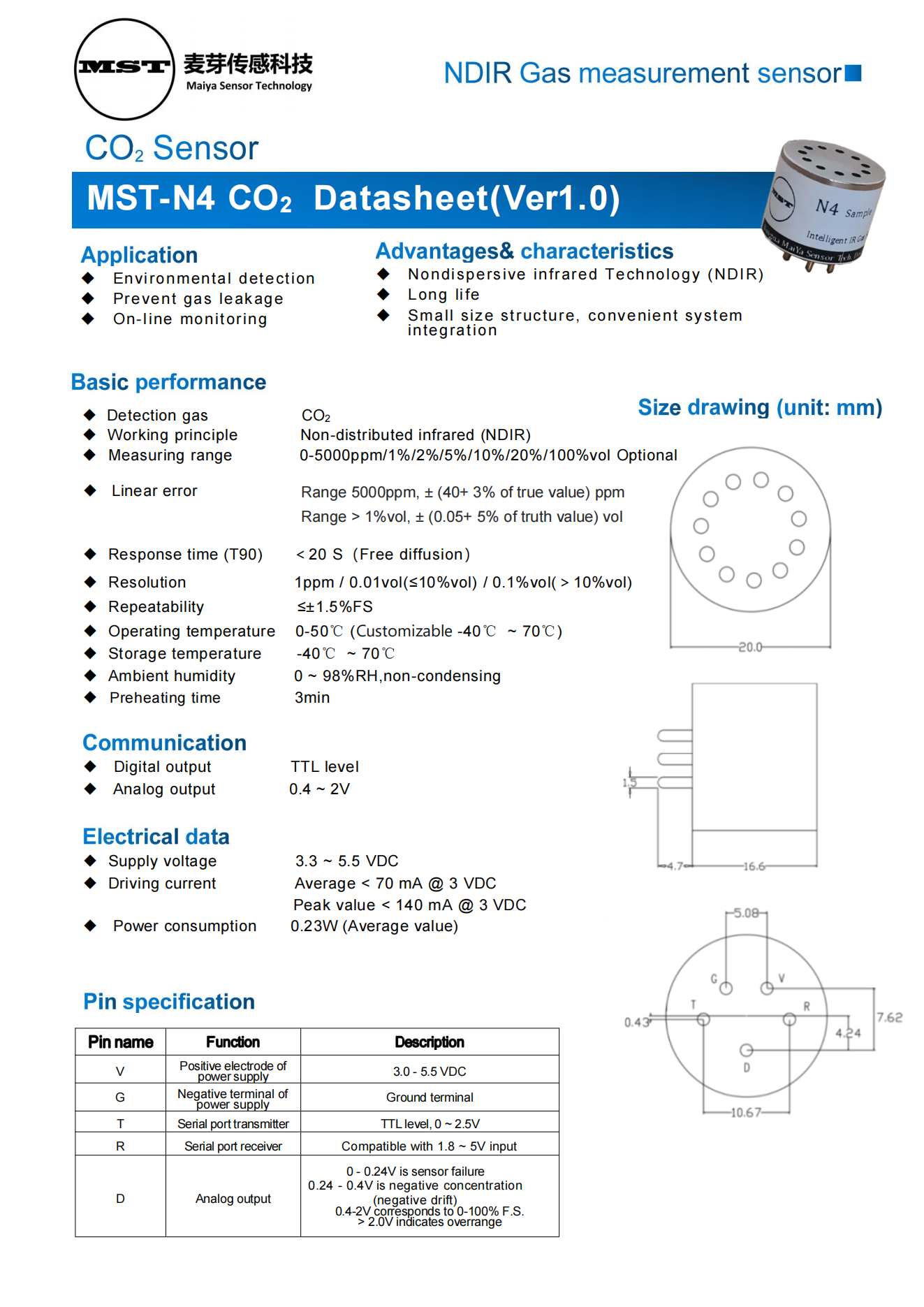 Advantages& characteristics Nondispersive infrared Technology (NDIR) Long life Small size structure, convenient system integration