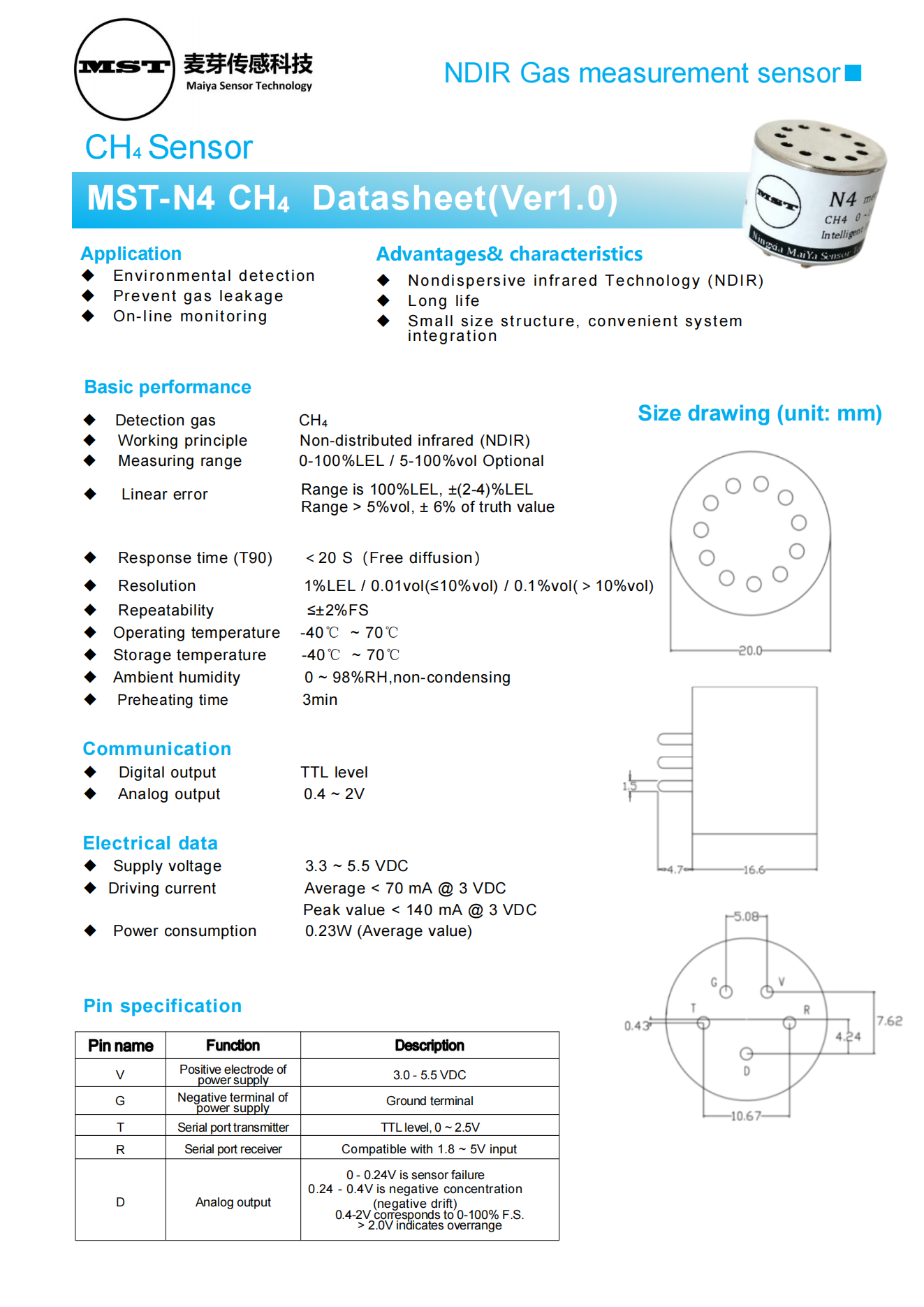 MST-N4 CH4 Sensor NDIR Gas measurement sensor