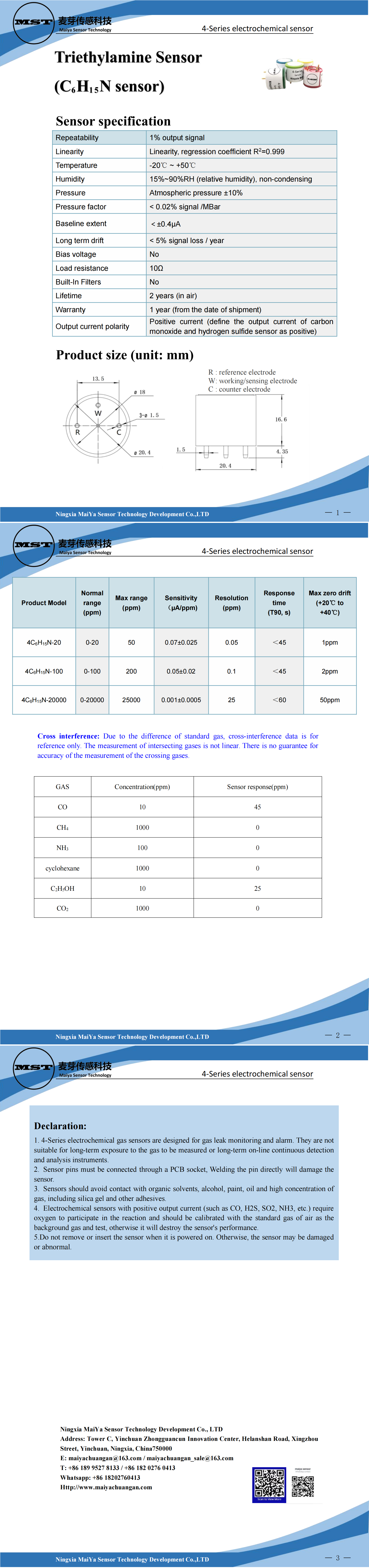 Triethylamine Sensor(C6H15N sensor)4-Series electrochemical sensor
