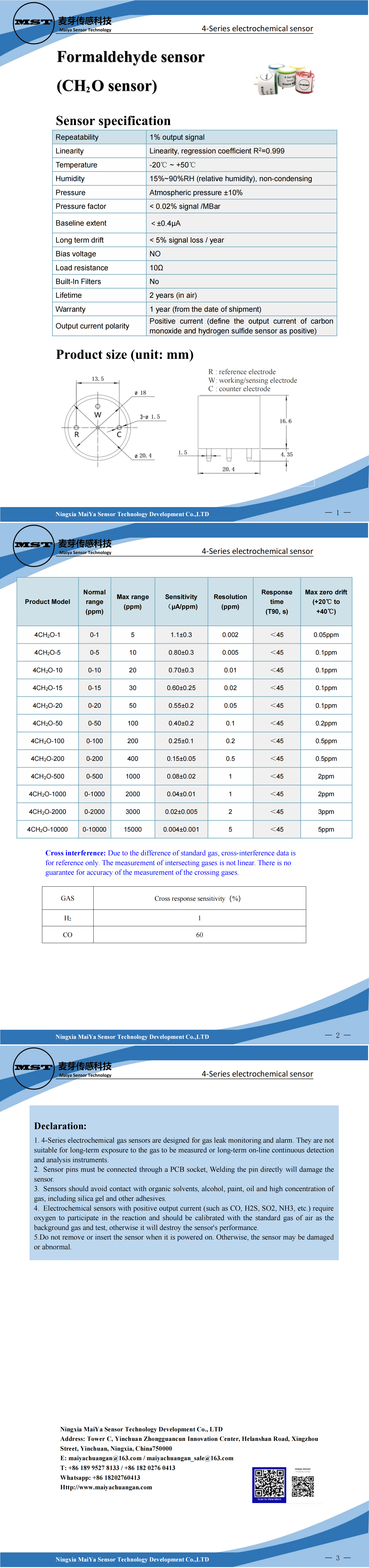 Formaldehyde sensor(CH?O sensor)4-Series electrochemical sensor