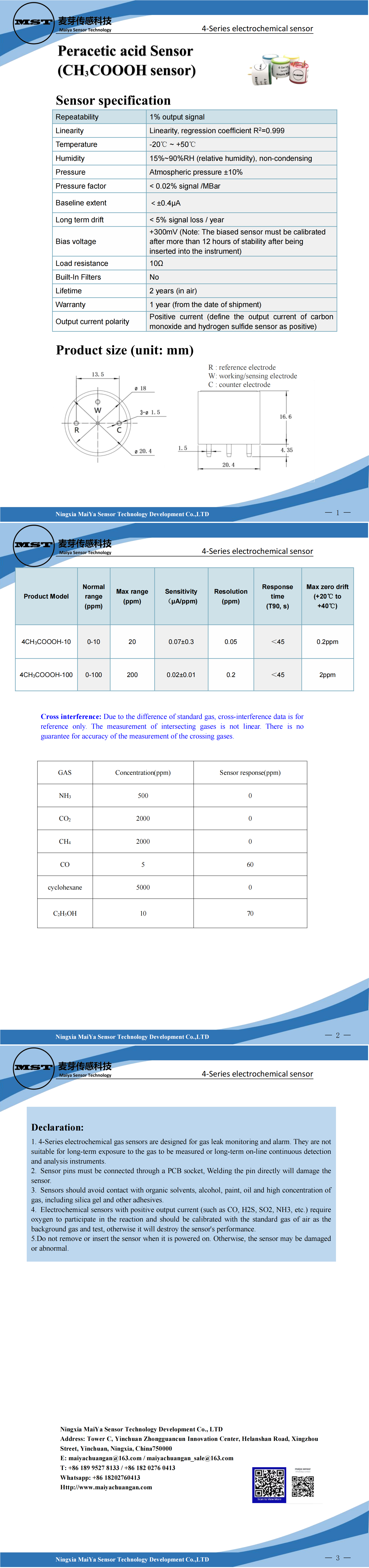 Peracetic acid Sensor(CH?COOOH sensor)4-Series electrochemical sensor