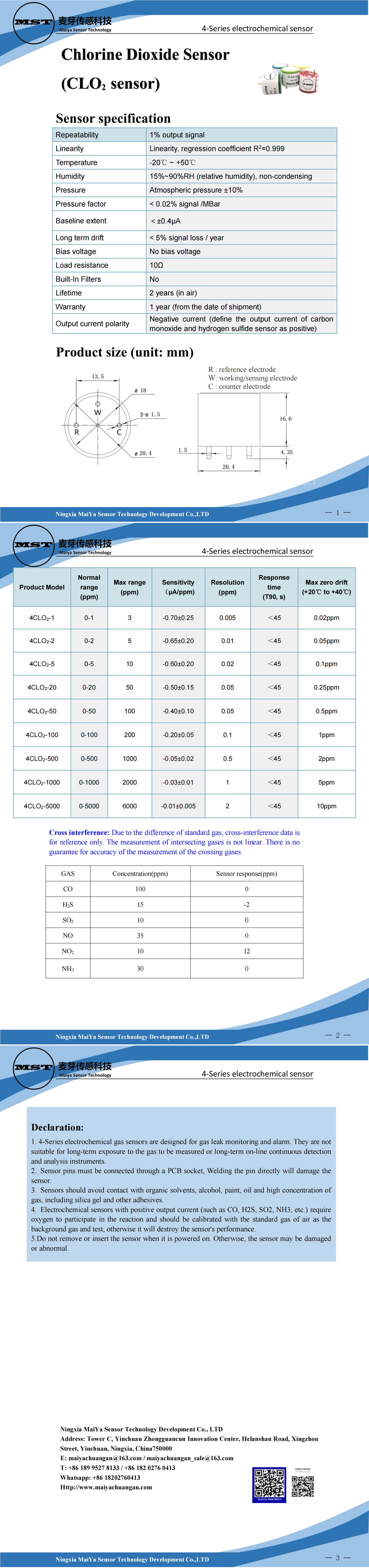 Chlorine Dioxide Sensor(CLO? sensor)4-Series electrochemical sensor