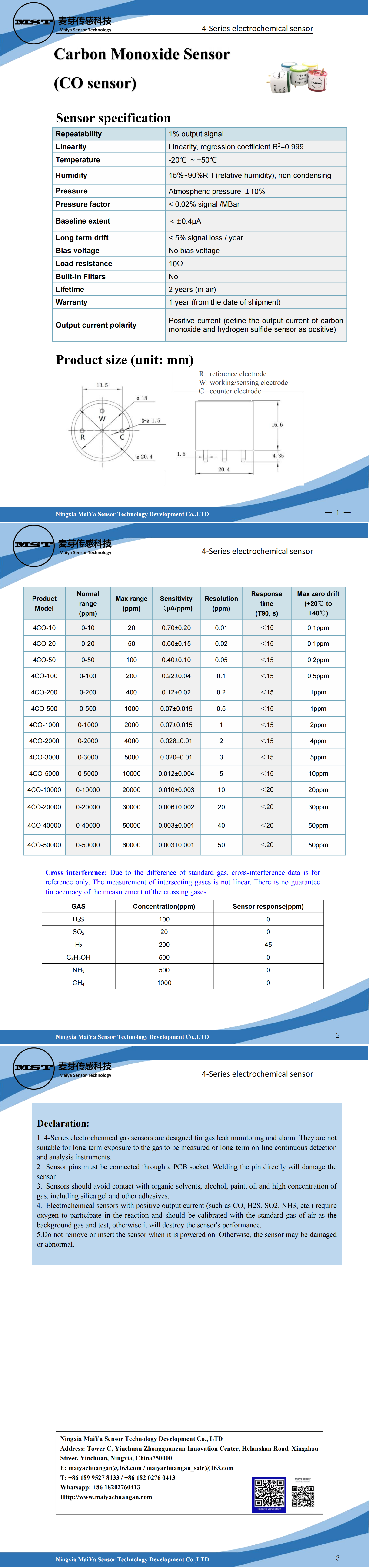 Carbon Monoxide Sensor(CO sensor)4-Series electrochemical sensor