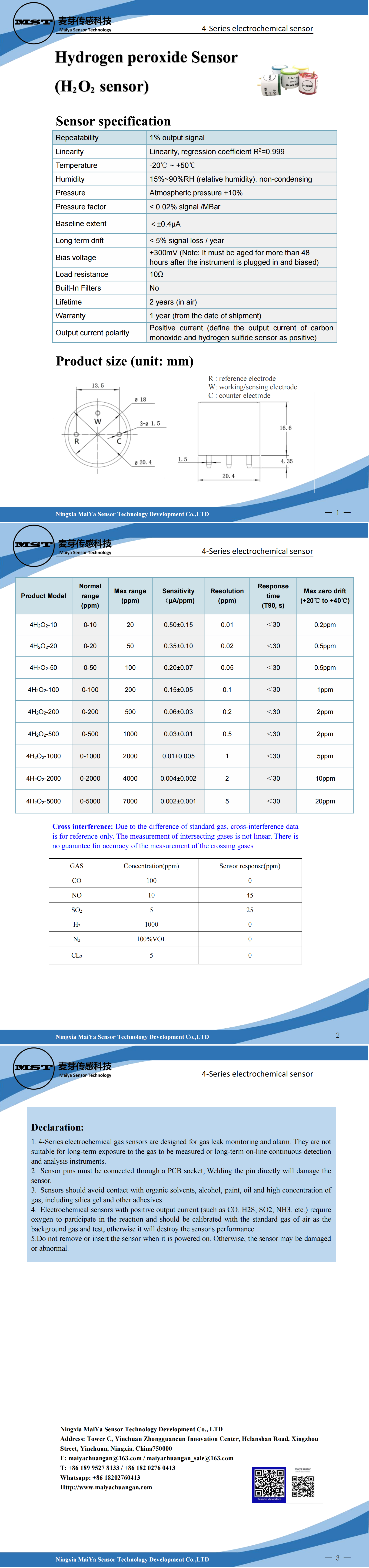 Hydrogen peroxide Sensor(H?O? sensor)4-Series electrochemical sensor