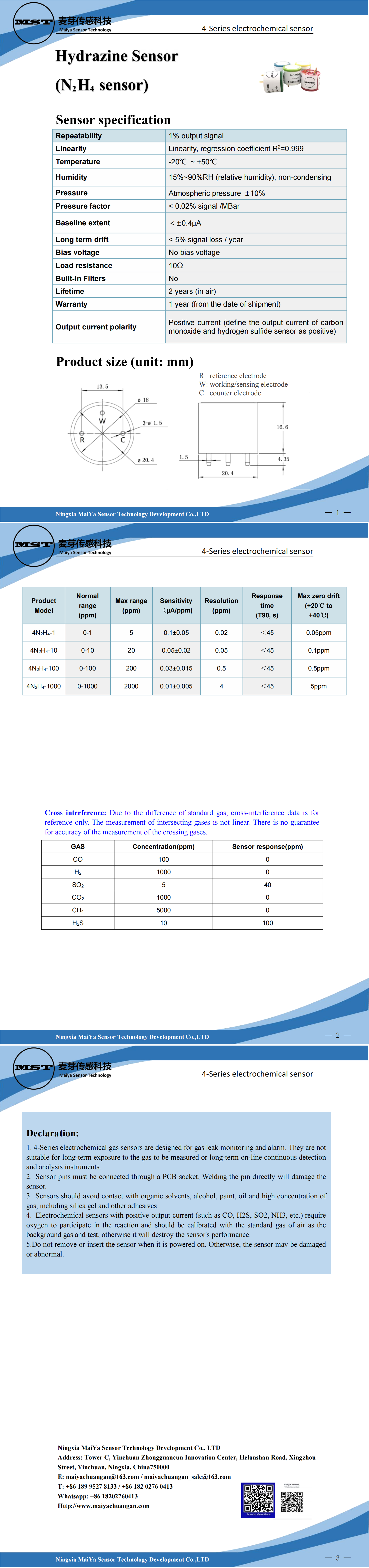 Hydrazine Sensor(N?H? sensor)4-Series electrochemical sensor