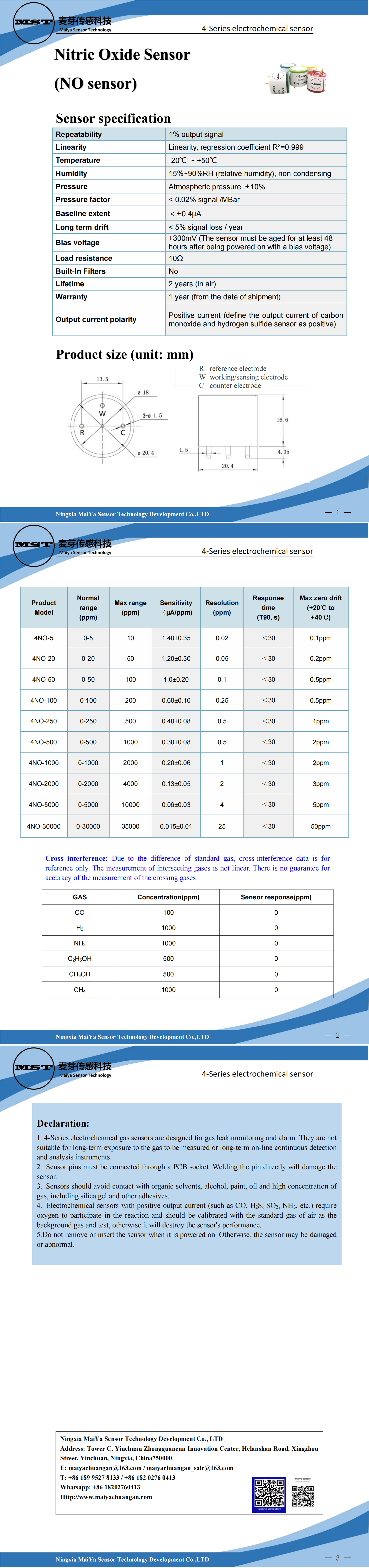 Nitric Oxide Sensor (NO sensor)4-Series electrochemical sensor
