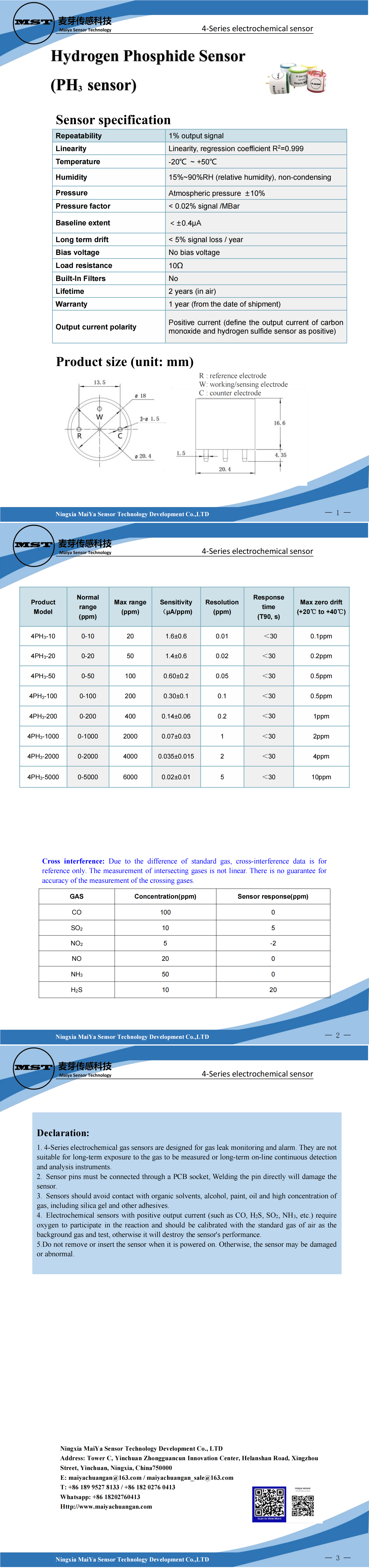 Hydrogen Phosphide Sensor(PH? sensor)4-Series electrochemical sensor