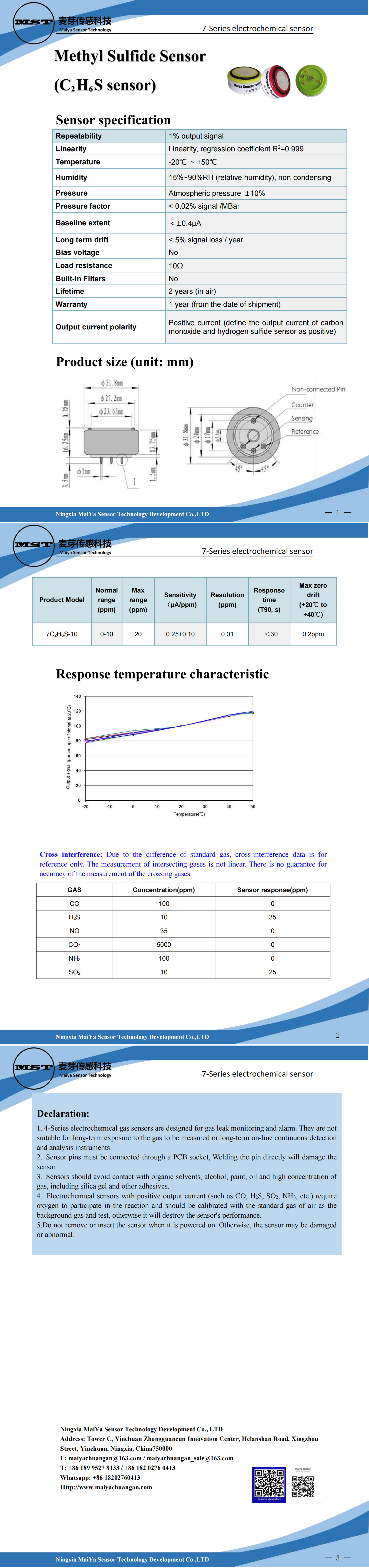Methyl Sulfide Sensor(C?H?S sensor)7-Series electrochemical sensor