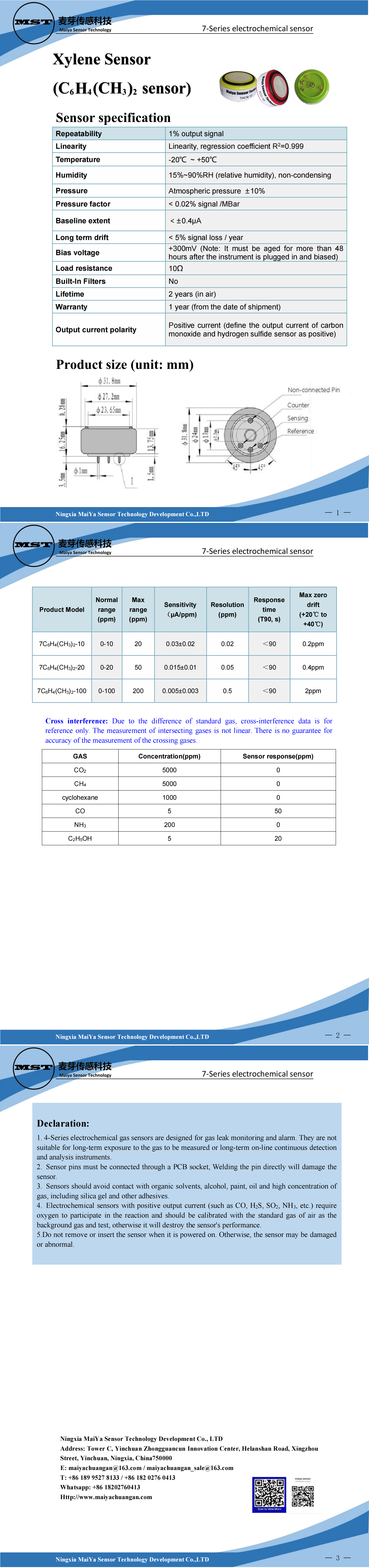 Xylene Sensor (C?H?(CH?)? sensor)7-Series electrochemical sensor