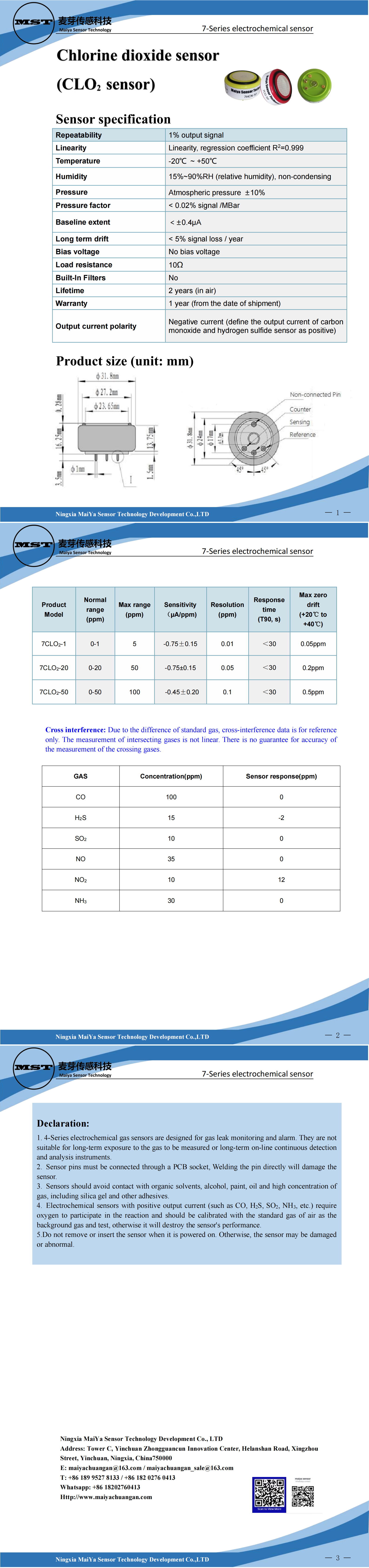 Chlorine dioxide sensor(CLO? sensor)7-Series electrochemical sensor