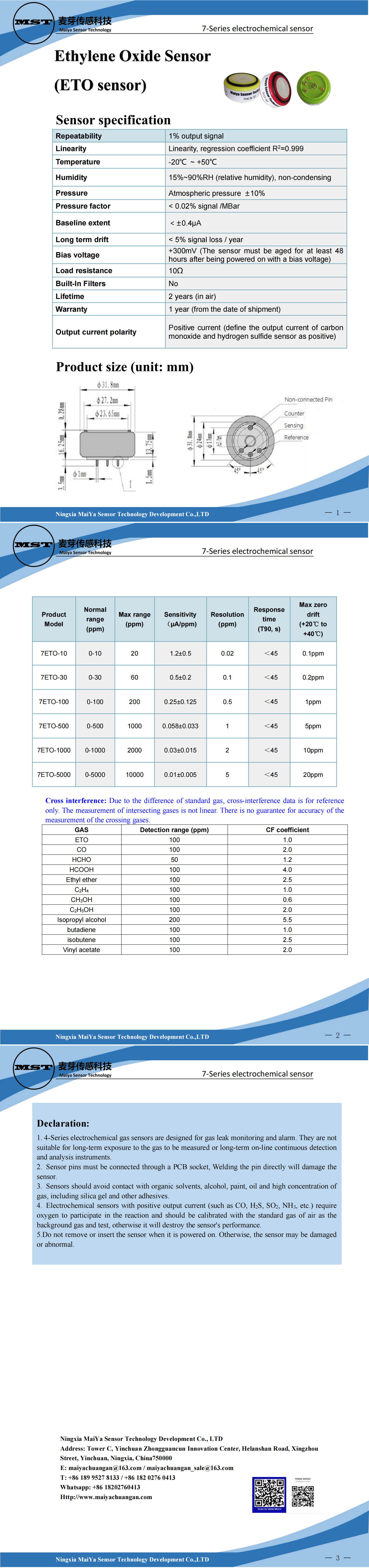 Ethylene Oxide Sensor(ETO sensor)7-Series electrochemical sensor