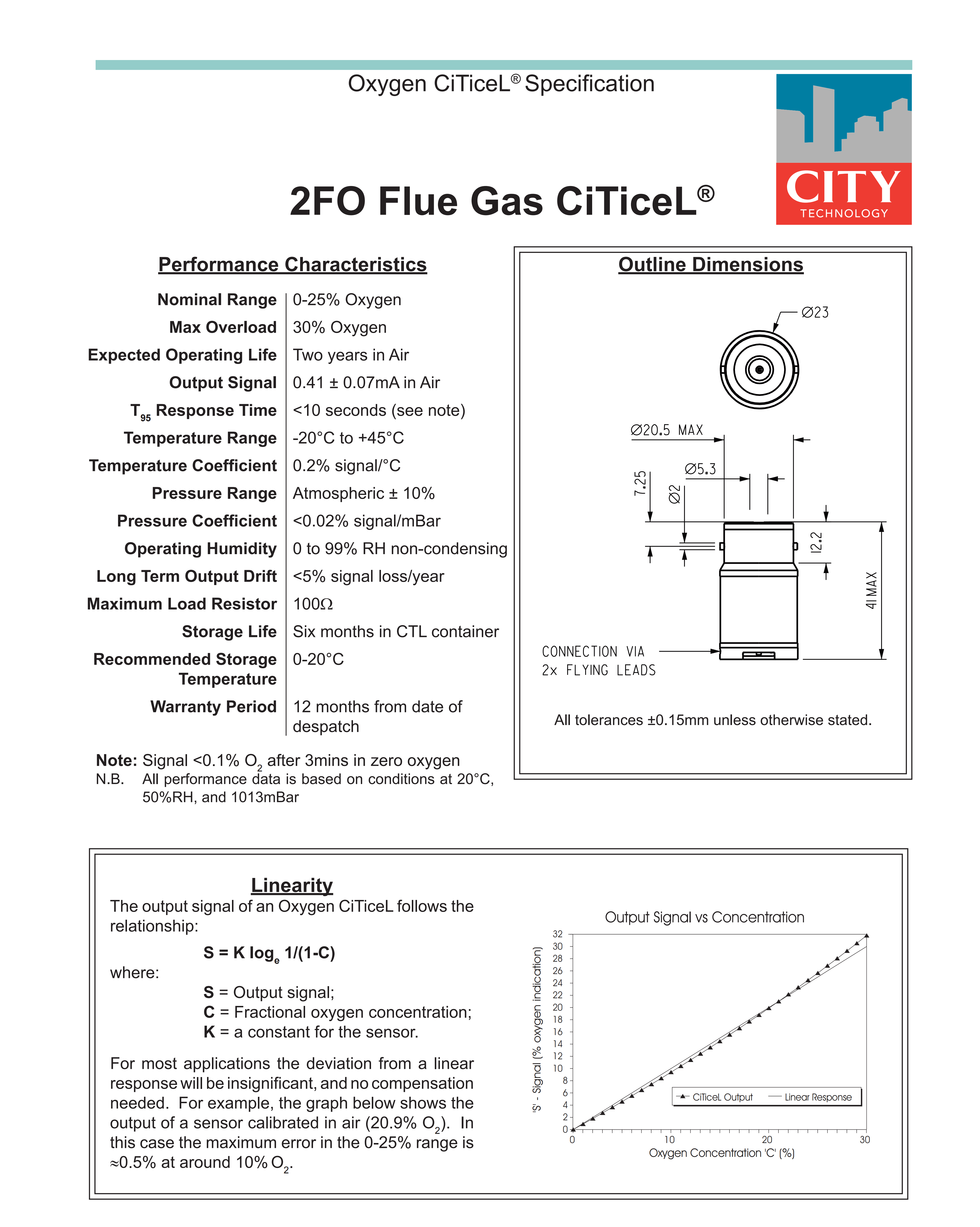 Nominal Range 0-25% Oxygen Max Overload Max Overload