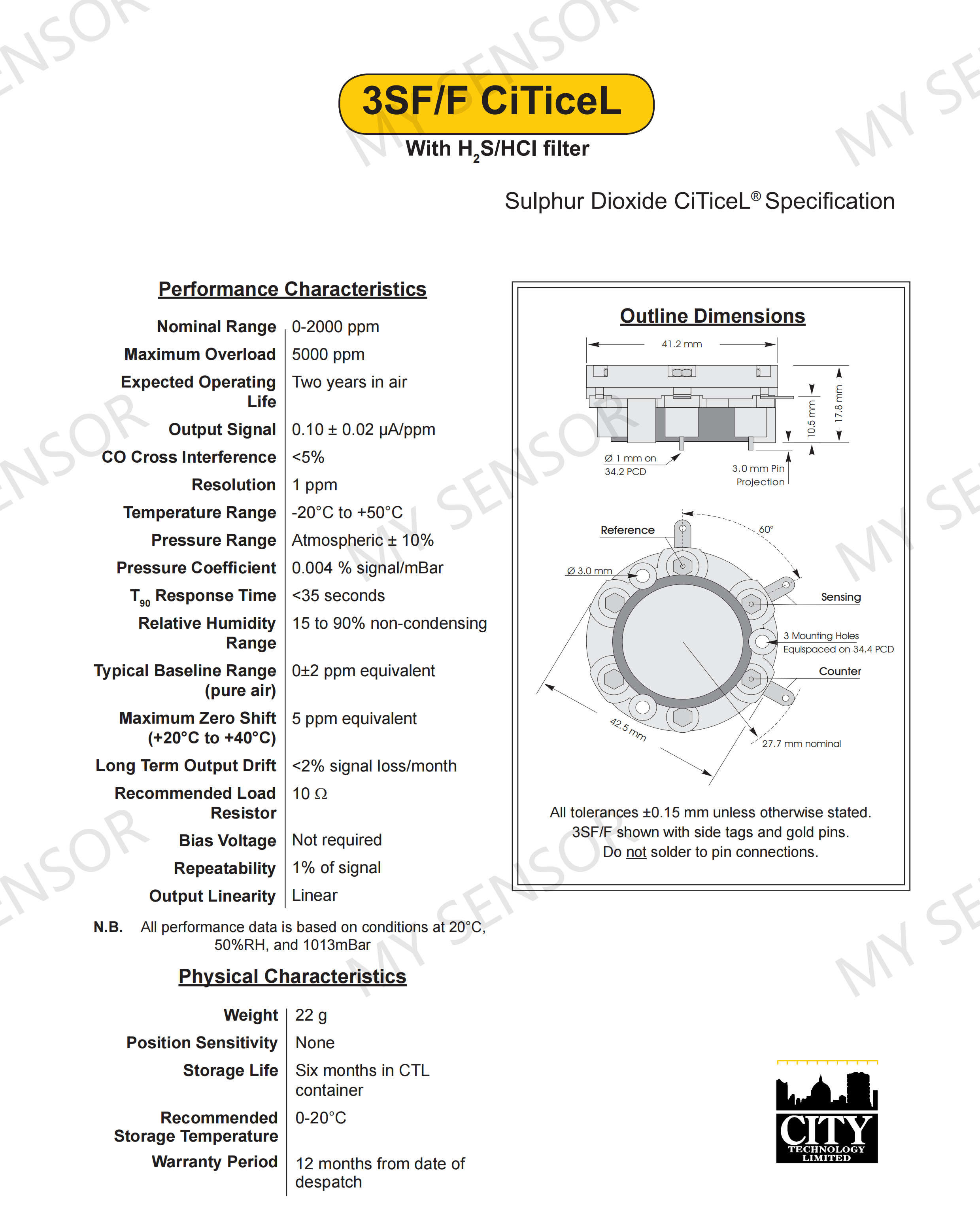 Nominal Range 0-2000 ppm Maximum Overload 5000 ppm