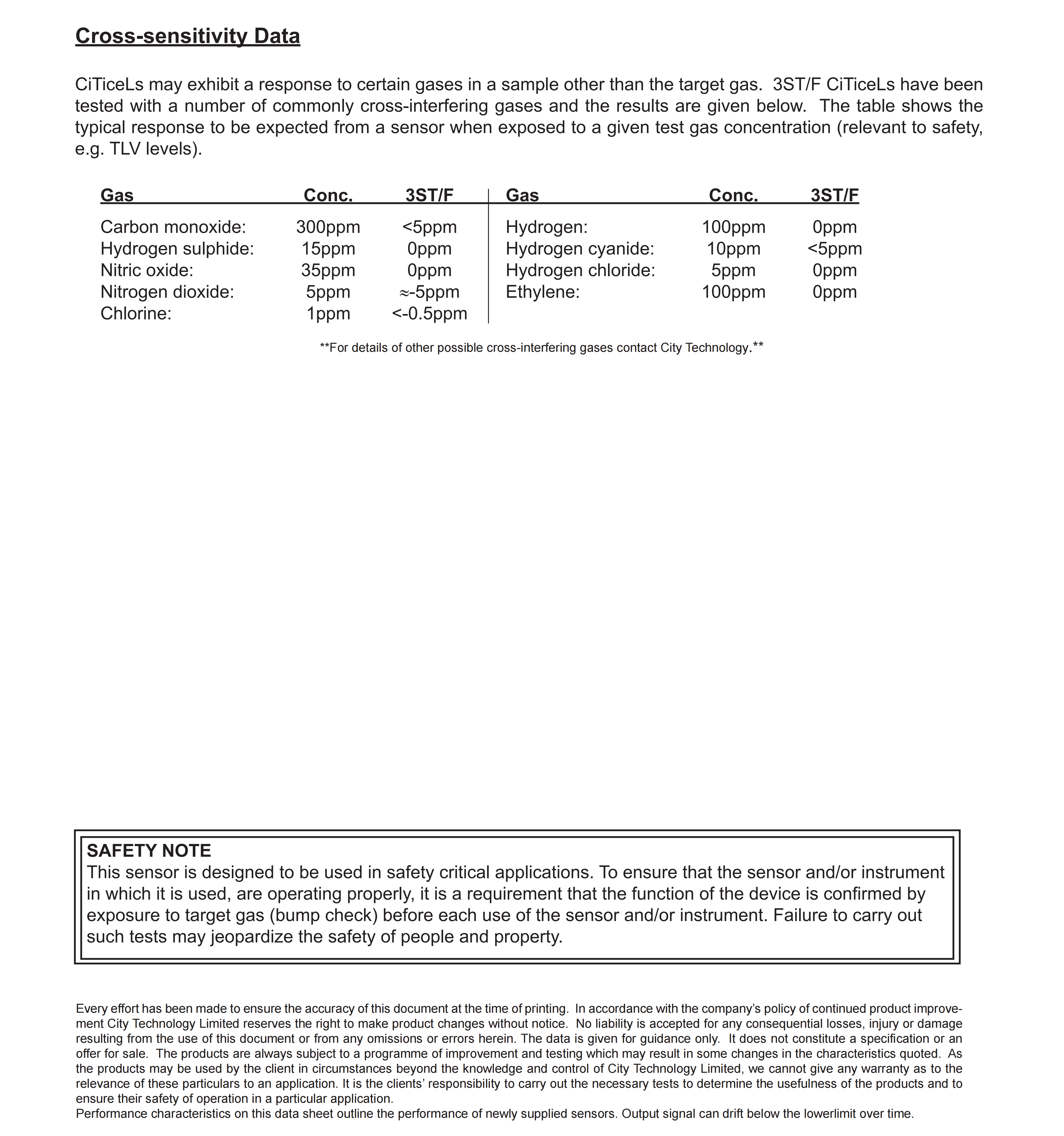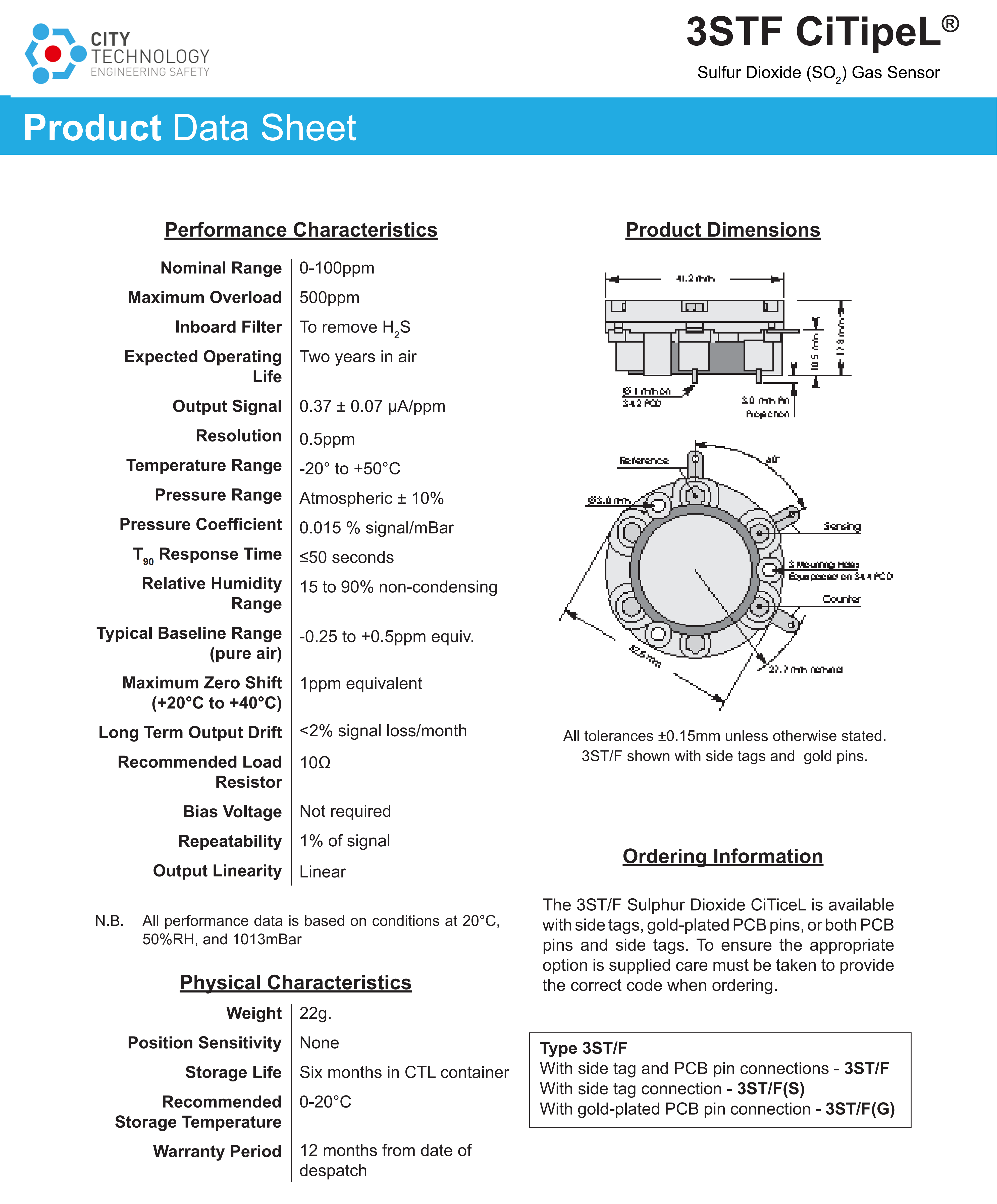 Nominal Range 0-100ppm Maximum Overload 500ppm