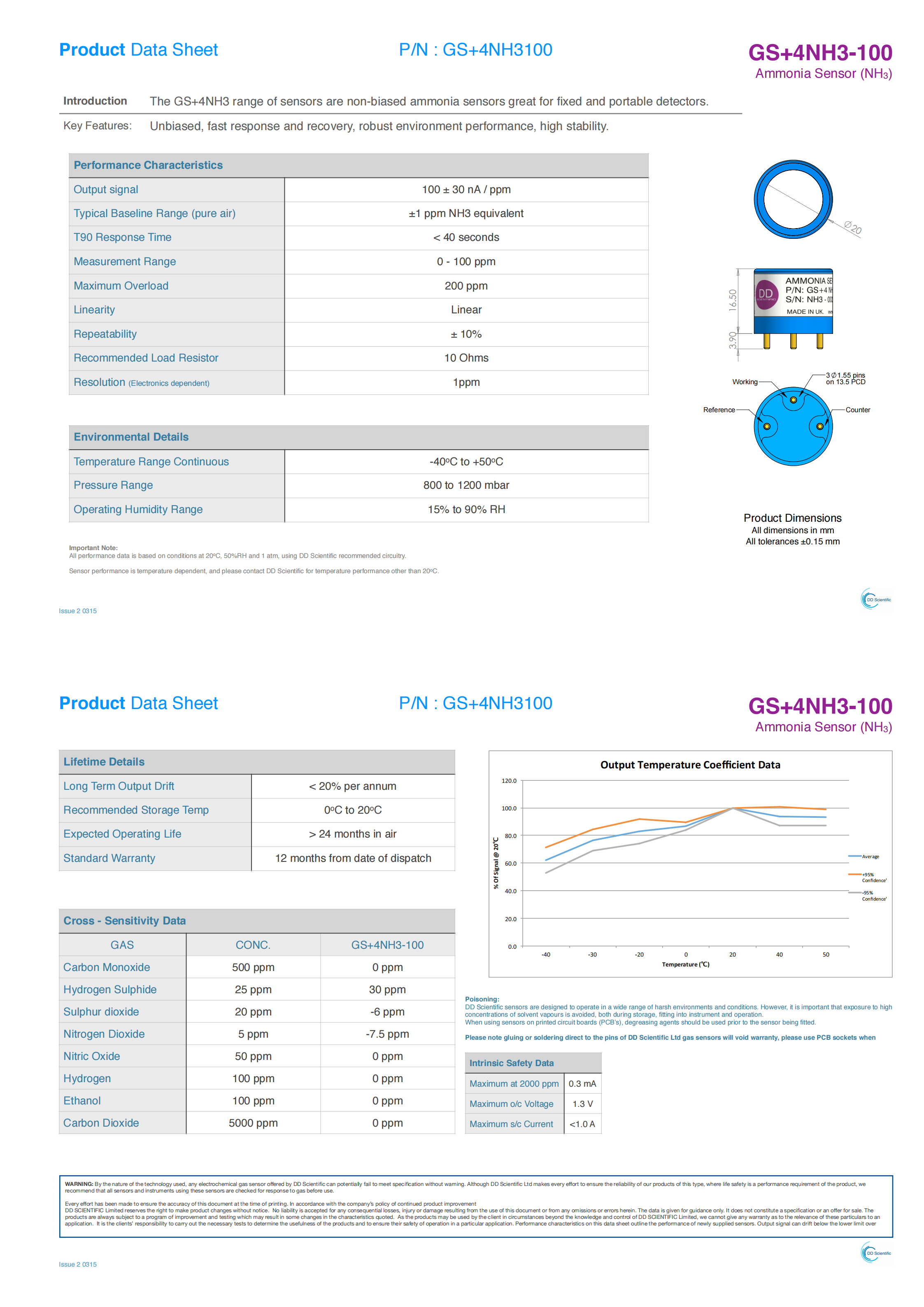 The GS+4NH3 range of sensors are non-biased ammonia sensors great for fixed and portable detectors. Key Features: Unbiased, fast response and recovery, robust environment performance, high stability