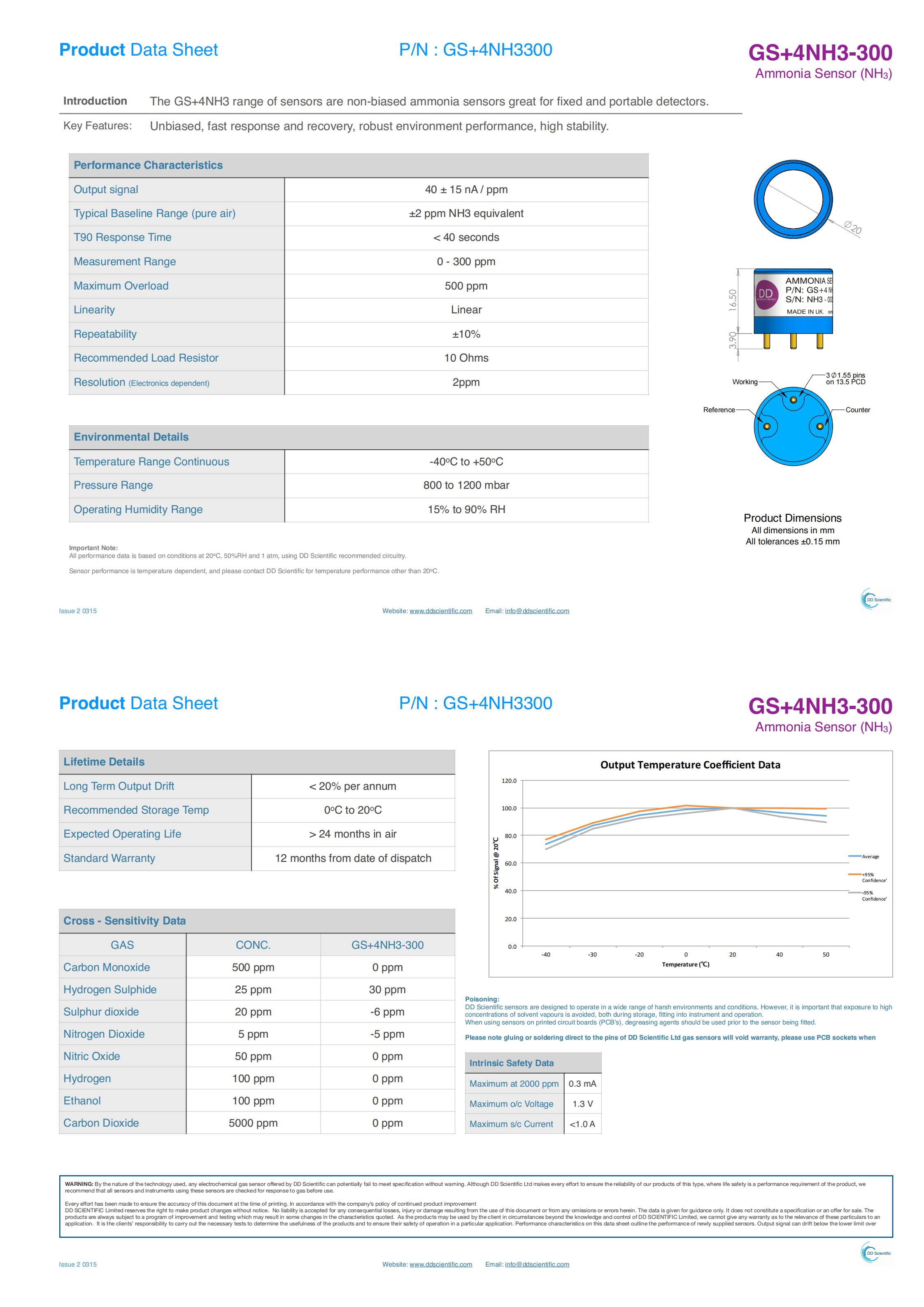 The GS+4NH3 range of sensors are non-biased ammonia sensors great for fixed and portable detectors. Key Features: Unbiased, fast response and recovery, robust environment performance, high stability