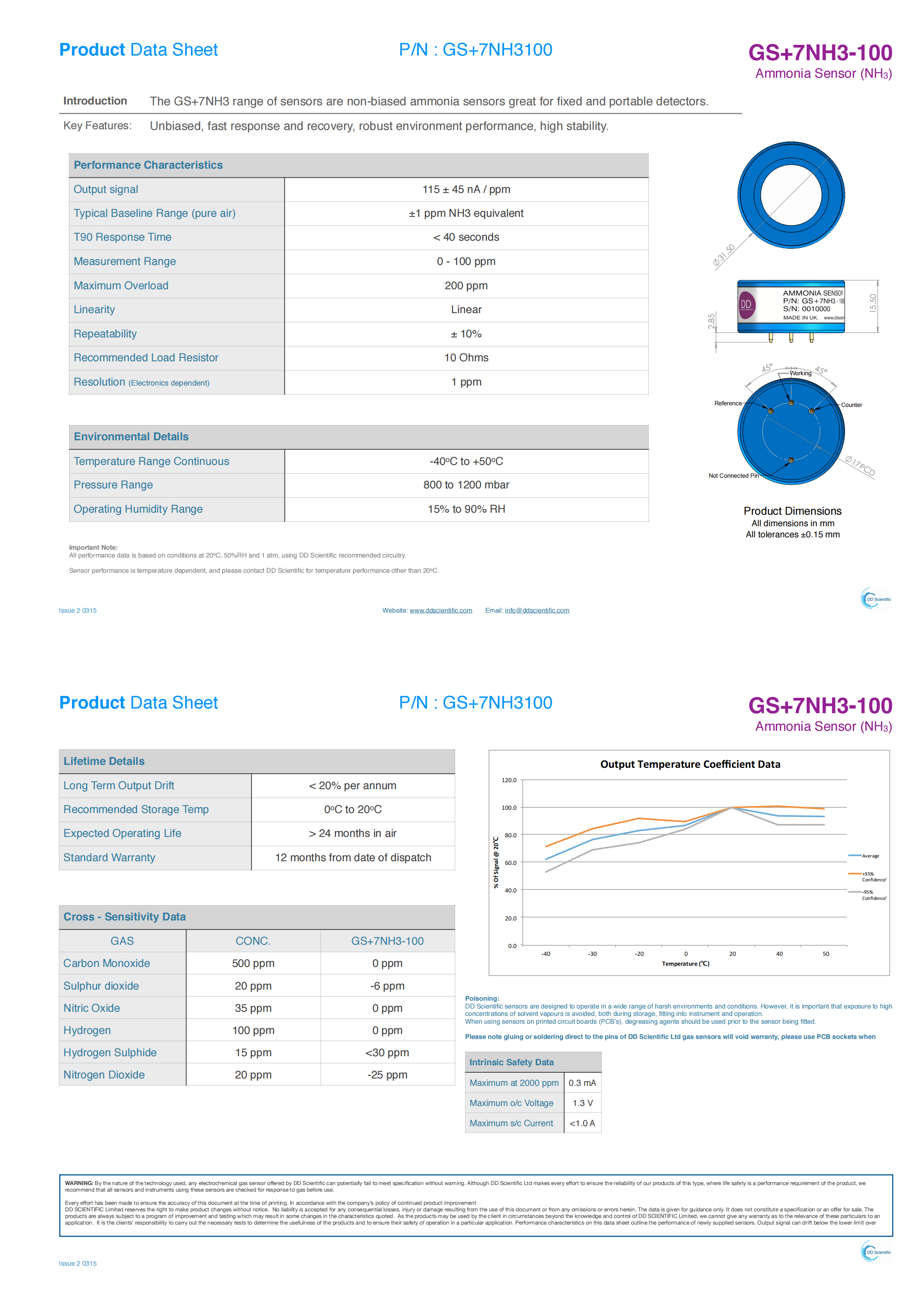 The GS+7NH3 range of sensors are non-biased ammonia sensors great for fixed and portable detectors. Key Features: Unbiased, fast response and recovery, robust environment performance, high stability