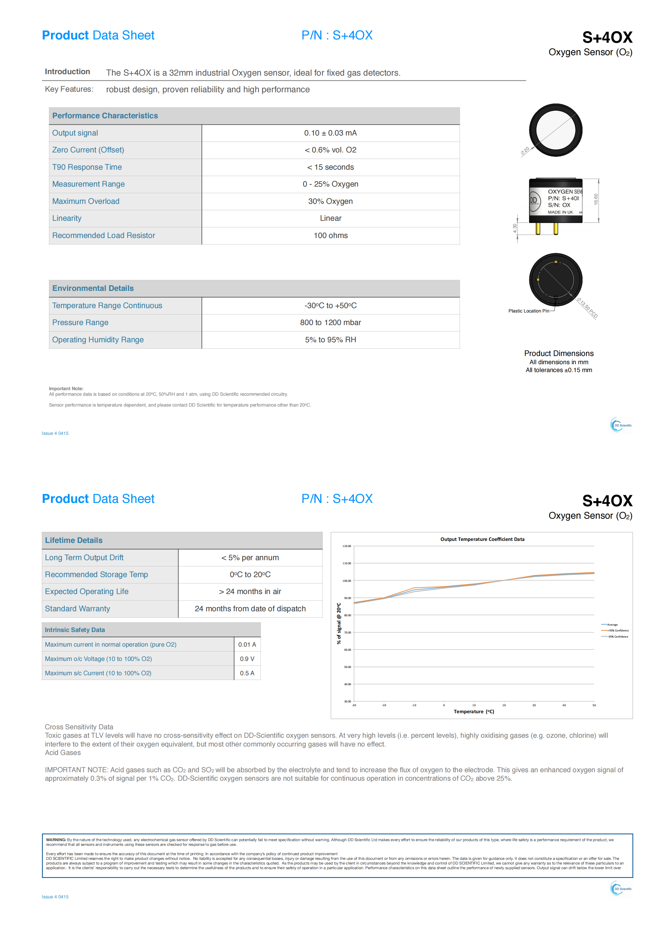 The S+4OX is a 32mm industrial Oxygen sensor, ideal for fixed gas detectors. Key Features: robust design, proven reliability and high performance