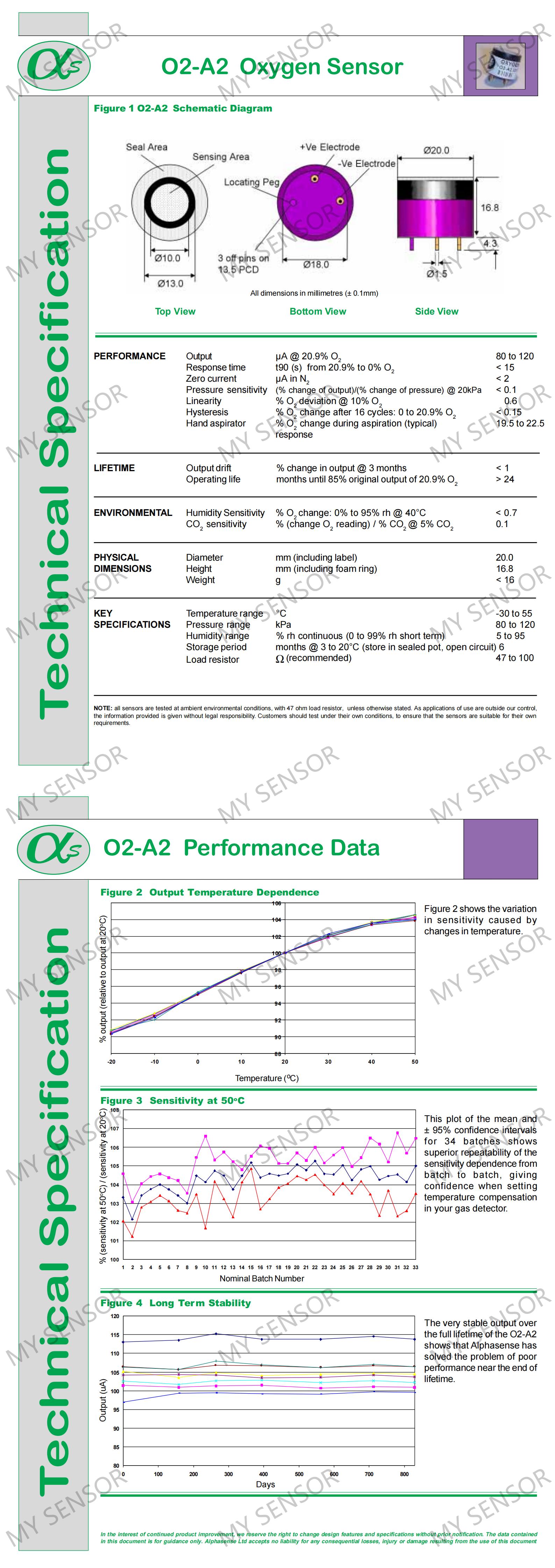 Replacement Oxygen (O2) sensor for Gas Detectors. Sensor is a compatible version and is manufactured by Alphasense, an OEM sensor manufacturer.
