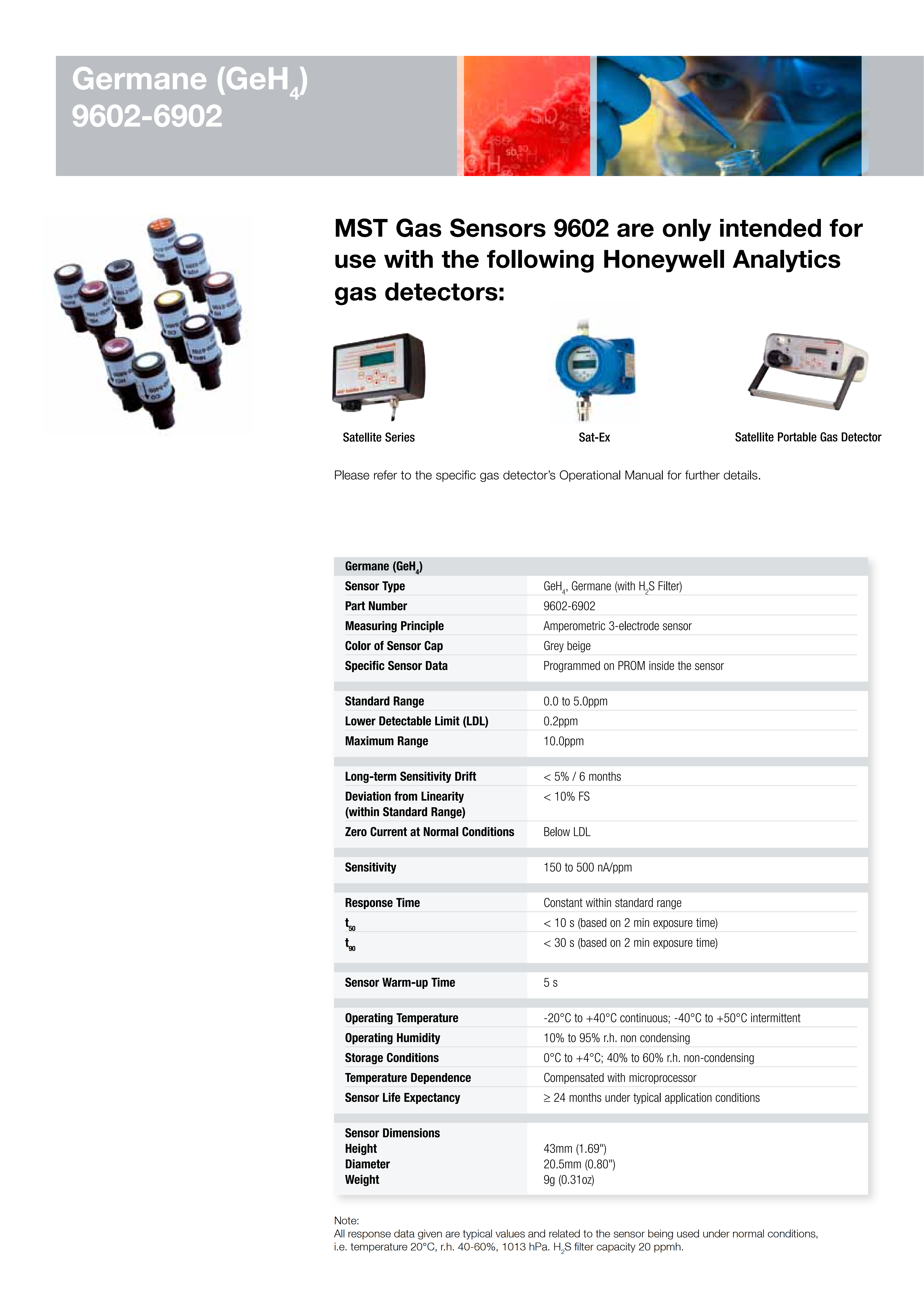 Honeywell Analytics Cells for the Satellite, Germane (GeH4) 0.1-5.0 ppm